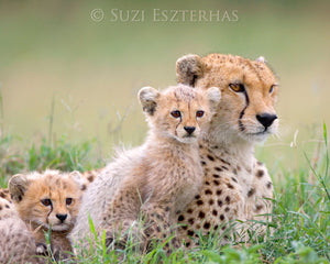 Cheetah Mom and Two Cubs Photo